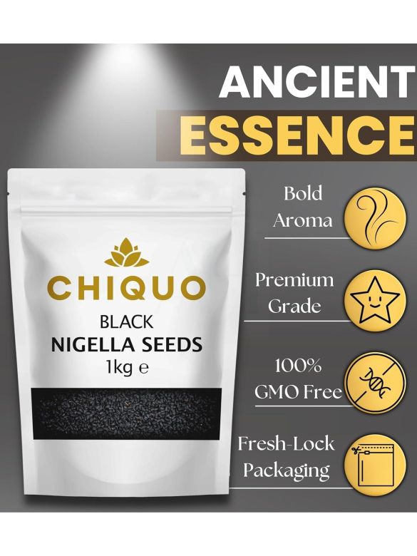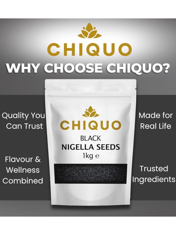 Chiquo Black Nigella Seeds 1kg are pure, whole black seeds often used in a variety of traditional cooking, seasoning, and pickling applications. Also known as kalonji, these seeds are sourced with care and packed in their natural form — with no additives, preservatives, or artificial flavourings.
