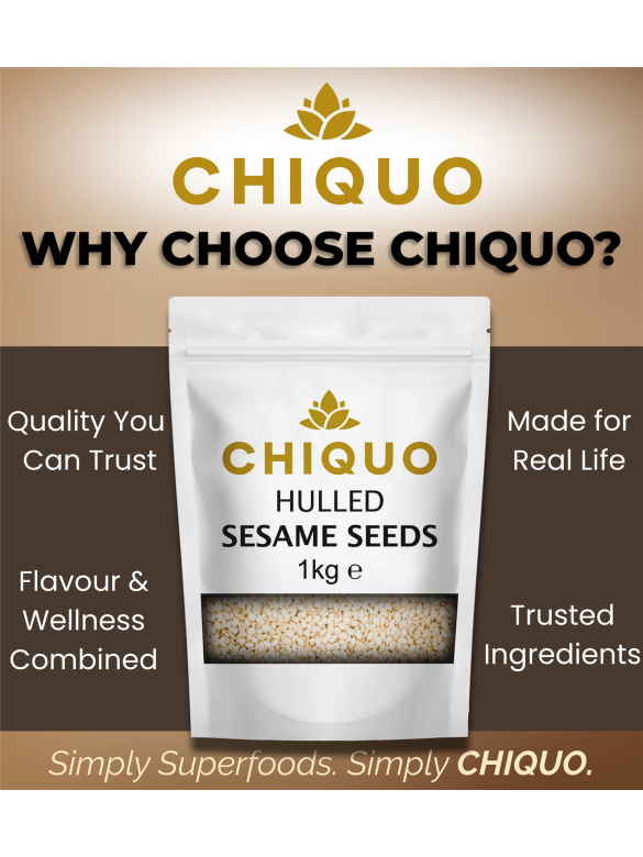 Chiquo Hulled Sesame Seeds 1kg offer a clean, premium quality pantry staple made from 100% pure, hulled sesame seeds. Carefully processed to remove the outer husk, these seeds deliver a mild flavour, smooth texture, and appealing cream-white colour, ideal for a variety of culinary uses.