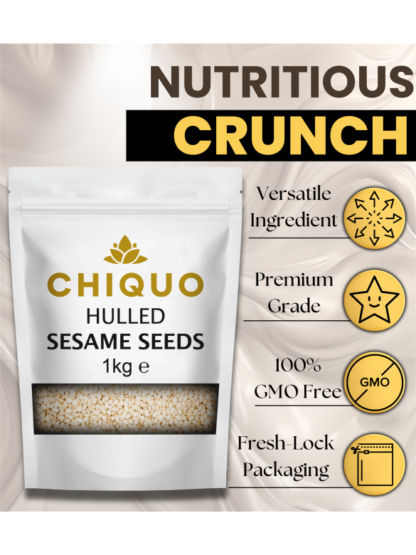 Supplied in a resealable 1kg pouch, these sesame seeds are perfect for daily kitchen use, commercial food prep, bulk recipes, and pantry storage. From homemade tahini to artisanal breads and finishing touches on stir-fries, Chiquo Hulled Sesame Seeds offer flexibility and consistent quality.