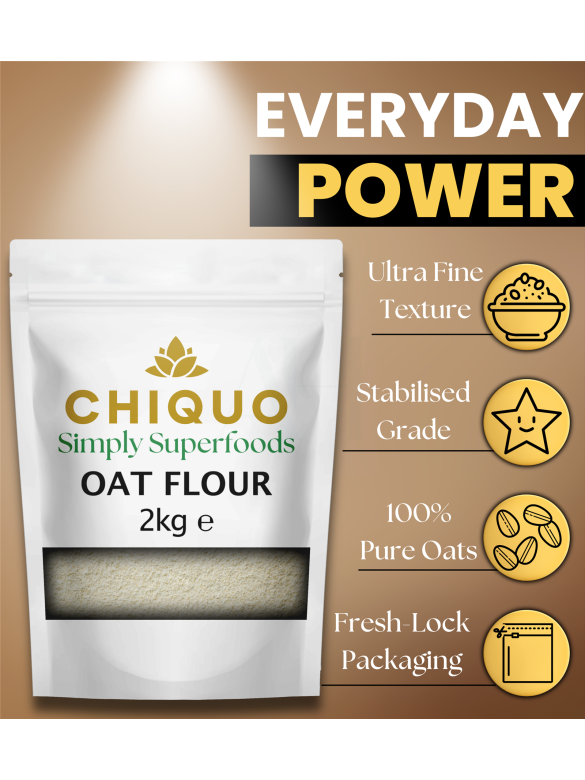 Chiquo Oat Flour 2kg - Premium Stabilised 100% Wholegrain Oats | High Protein & Fibre, Low Fat | No Added Sugar | Vegan & Clean Eating Friendly | Perfect for Pancakes, Baking, Smoothies & Cooking