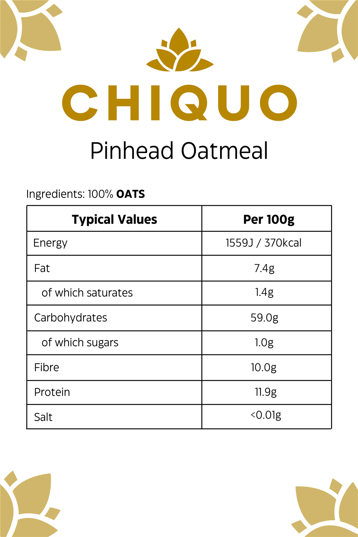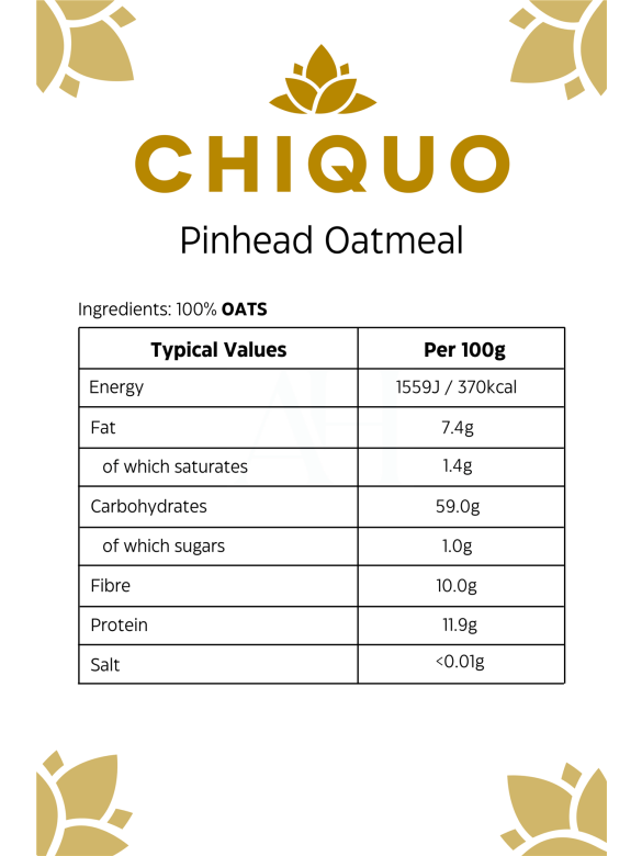 Whether you’re using it for your morning bowl, traditional recipes, or batch cooking, Chiquo Pinhead Oatmeal delivers purity, quality, and kitchen versatility with every scoop.