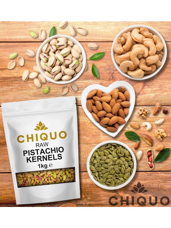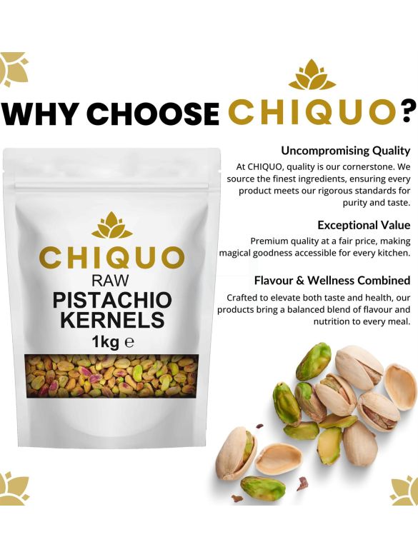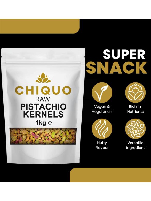 Chiquo Whole Pistachio Kernels 1kg | Premium Pistachios for Snacking, Cooking, Baking, and Desserts | Resealable Pack for Freshness | Vegan & Vegetarian Friendly