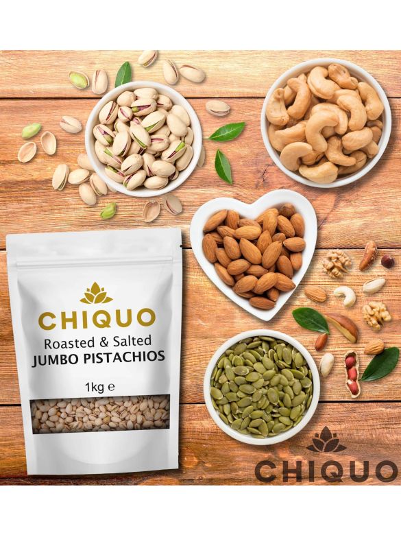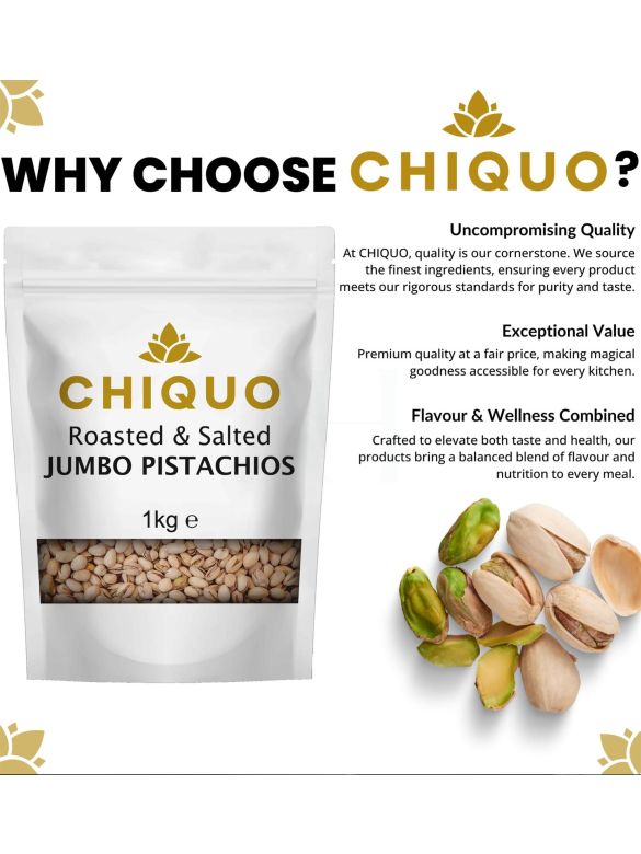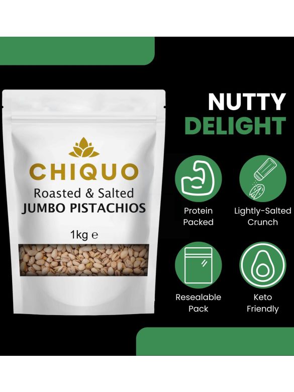 Chiquo Roasted & Salted Jumbo Pistachios 1kg | Premium Healthy Snack for Vegans, Vegetarians & Keto Diets | Kosher-Friendly | High Protein & Low Carb | Resealable Pack for Freshness